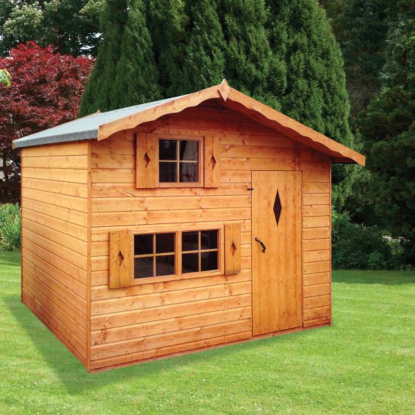 Chalet Style summerhouse, Angled sides, 300mm roof overhang.